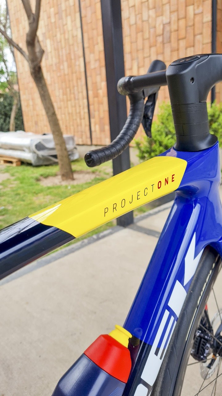| Horquilla | Madone Gen 8 de una sola pieza de carbono, tubo de horquilla conificado de carbono, guiado interno de los cables de freno, disco flat mount, eje pasante biselado de 12×100 mm |